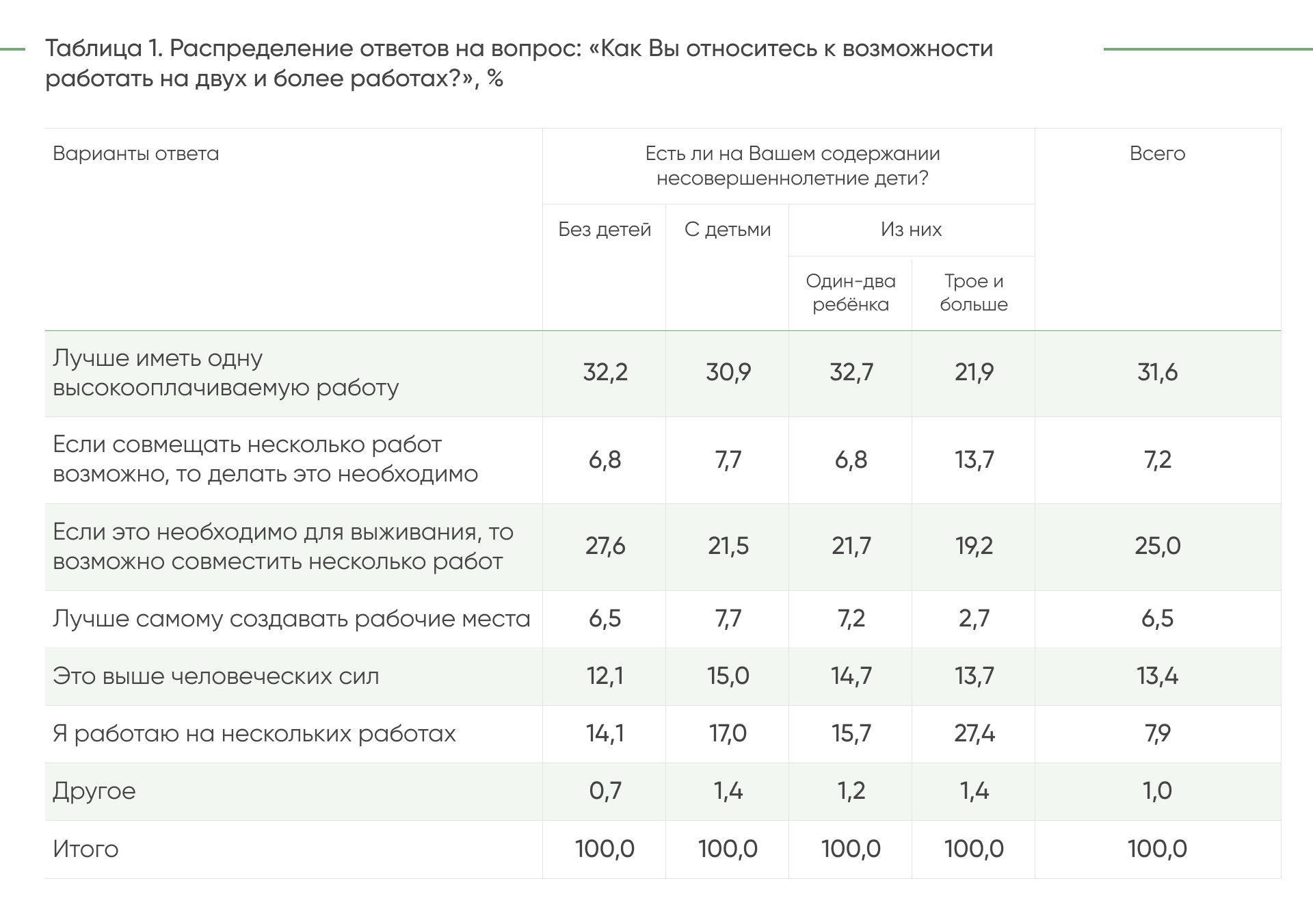 совместить несколько работ» выбрали 25,1% женщин и 24,8% мужчин, а наиболее