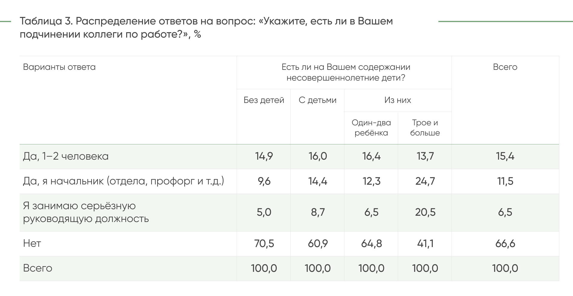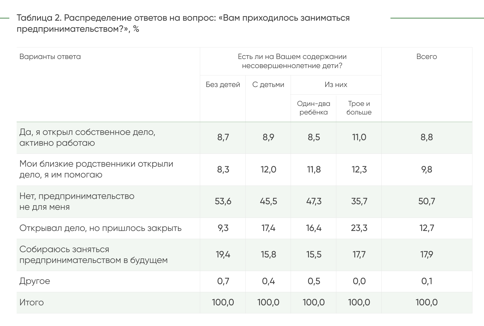 деятельности число детей в семье (Таблица 1), в анкете было три варианта ответа