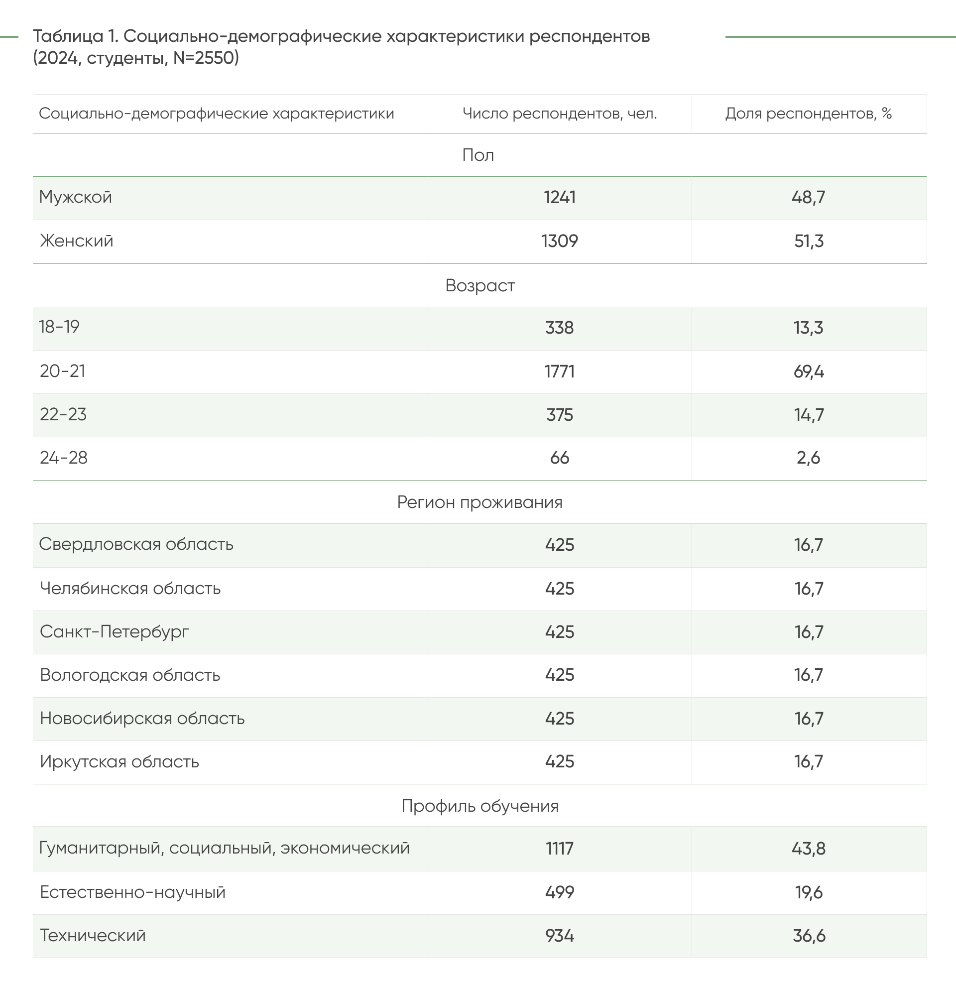 совокупности по профилю обучения и составляет 2550 респондентов.