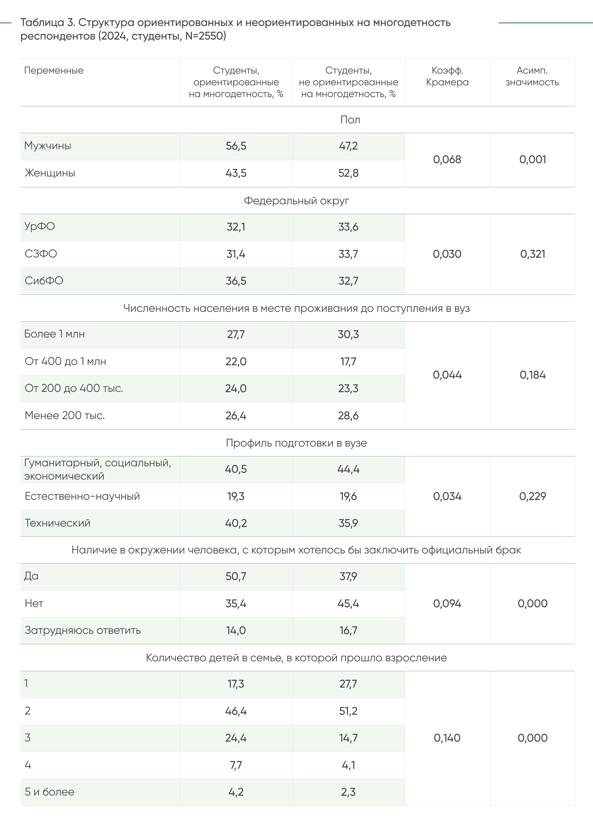 репродуктивных установок студентов [3; 4; 5; 6; 7], и многодетности [8; 9], и