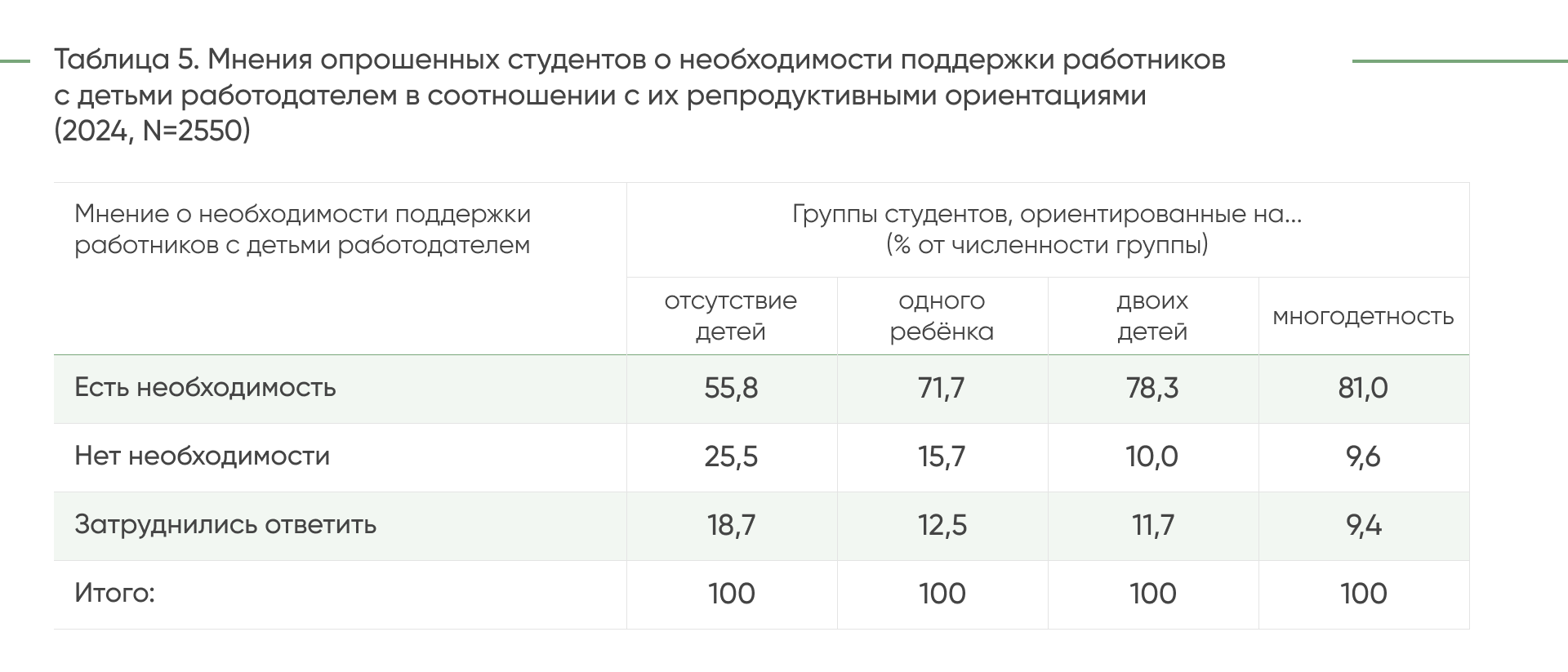 В целом же ориентация студенческой молодёжи на многодетность