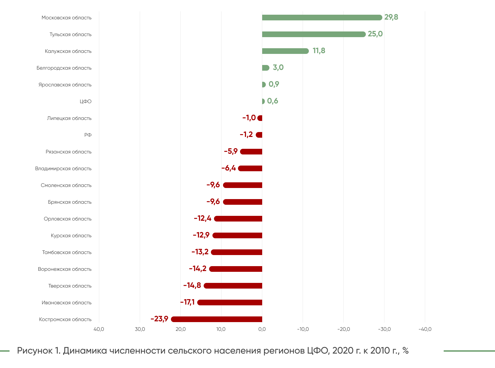 (Рисунок 1). В целом по ЦФО численность сельского населения в 2020 г. по сравнению