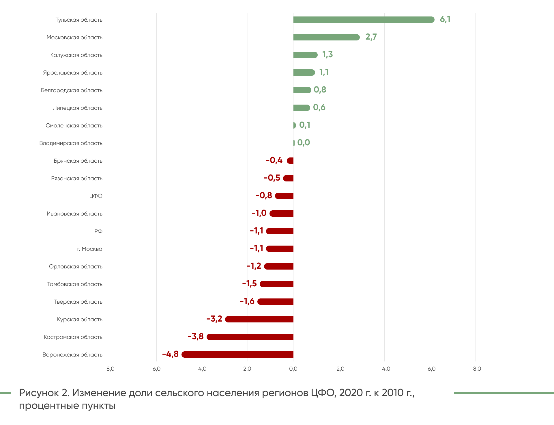 значительный рост (+6,1 п.п.) доли сельского населения в Тульской области,