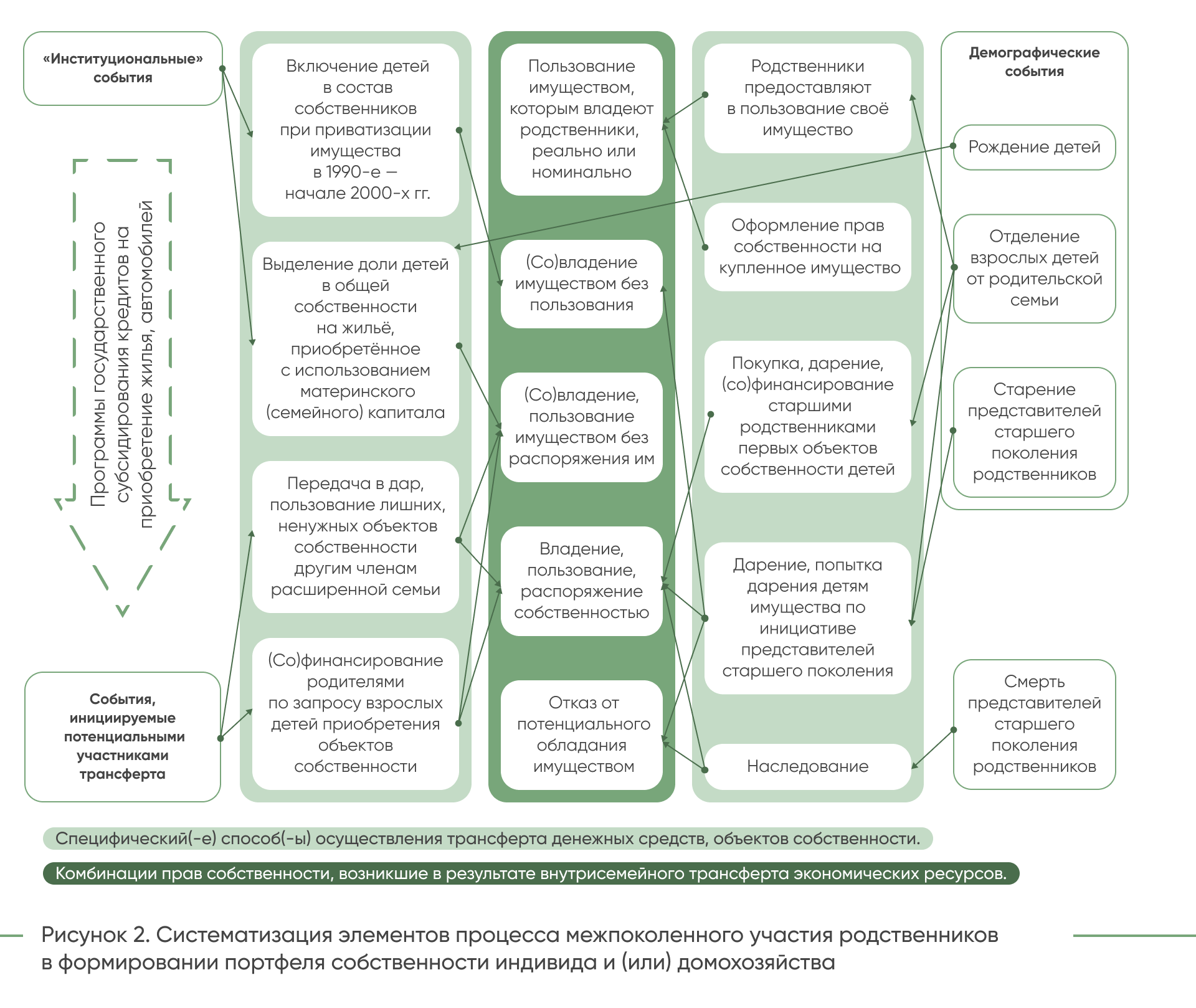 Структурирование элементов процесса внутрисемейных межпоколенных трансфертов экономических ресурсов: участие родственников в формировании портфеля собственности индивида или домохозяйства